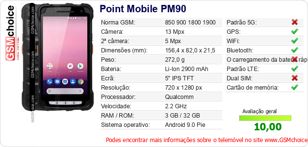 Dados sobre o telemóvel Point Mobile PM90 na sua página