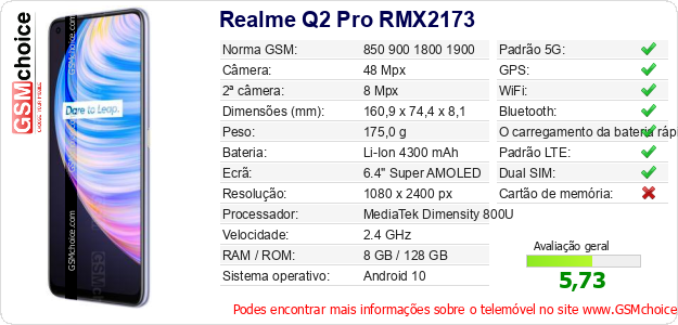 Dados sobre o telemóvel Realme Q2 Pro RMX2173 na sua página