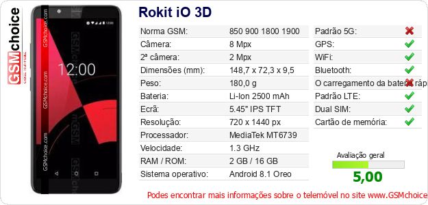 Dados sobre o telemóvel Rokit iO 3D na sua página