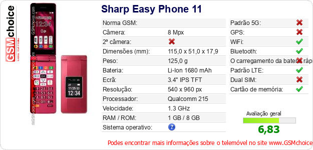 Dados sobre o telemóvel Sharp Easy Phone 11 na sua página
