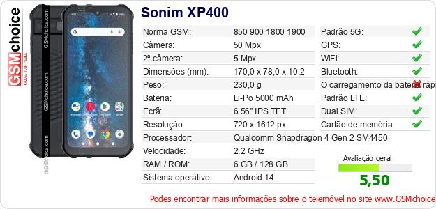 Dados sobre o telemóvel Sonim XP400 na sua página