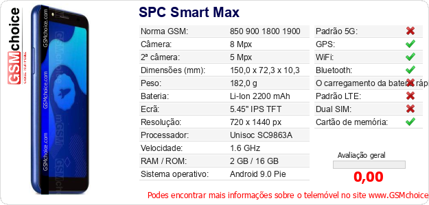 Dados sobre o telemóvel SPC Smart Max na sua página