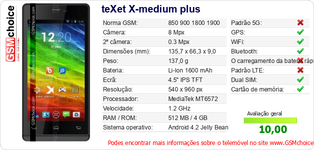Dados sobre o telemóvel teXet X-medium plus na sua página