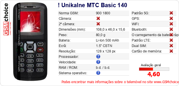 Dados sobre o telemóvel ! Unikalne MTC Basic 140 na sua página