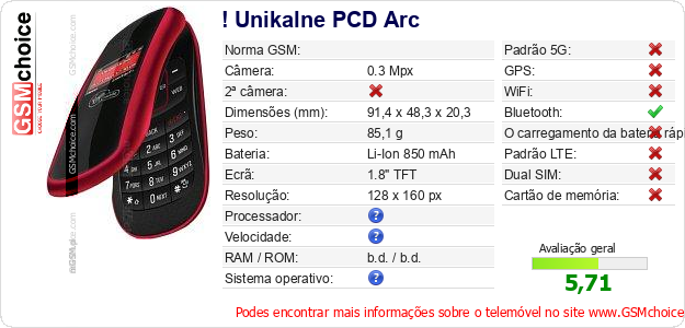 Dados sobre o telemóvel ! Unikalne PCD Arc na sua página