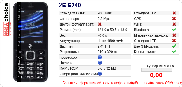 Данные о телефоне 2E E240 на Вашем сайте