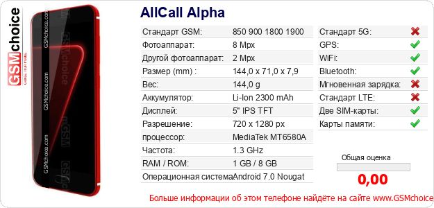 Данные о телефоне AllCall Alpha на Вашем сайте