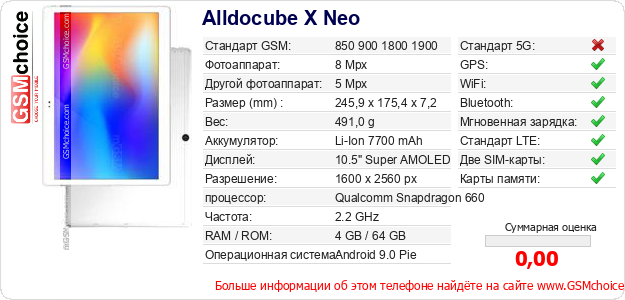 Данные о телефоне Alldocube X Neo на Вашем сайте