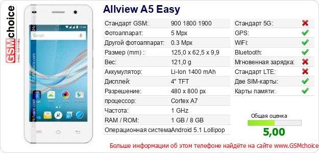Данные о телефоне Allview A5 Easy на Вашем сайте