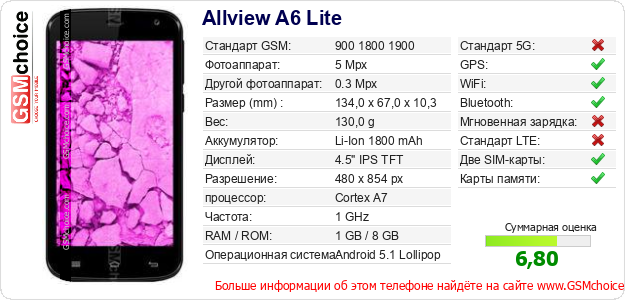 Данные о телефоне Allview A6 Lite на Вашем сайте