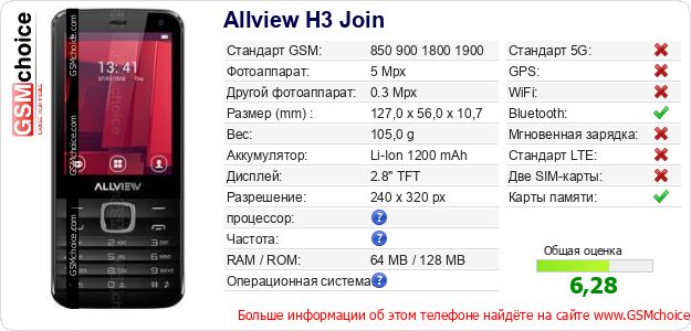 Данные о телефоне Allview H3 Join на Вашем сайте