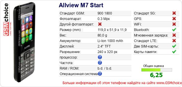 Данные о телефоне Allview M7 Start на Вашем сайте