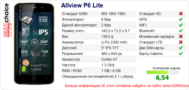 Данные о телефоне Allview P6 Lite на Вашем сайте