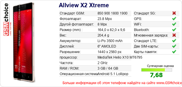 Данные о телефоне Allview X2 Xtreme на Вашем сайте