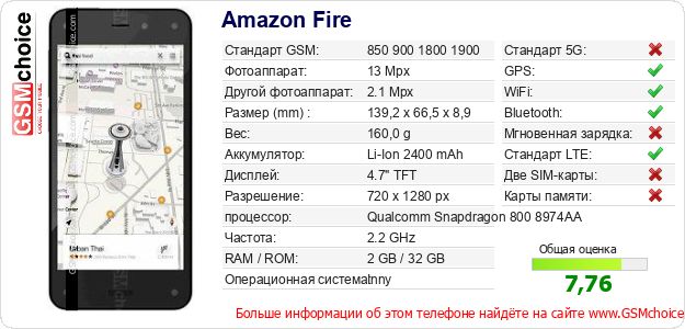 Данные о телефоне Amazon Fire на Вашем сайте