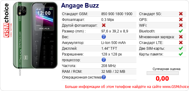 Данные о телефоне Angage Buzz на Вашем сайте