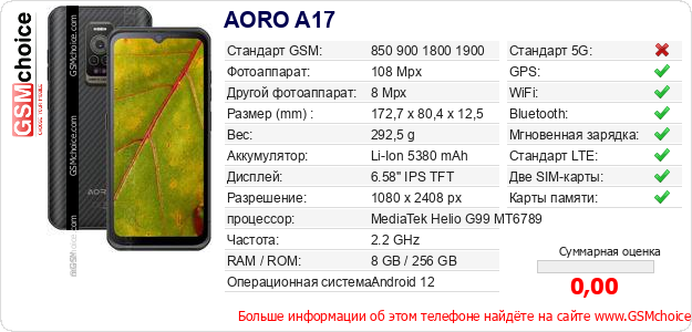 У Тебя есть свой сайт? Хочешь где-то разместить информацию о базовых данных мобильника AORO A17 ? Это запросто устроить. Достаточно скачать картинку или скопировать и разместить на соответствующем сайте нижерасположенный код:Размещение этого кода вызовет появление нижерасположенной картинки: