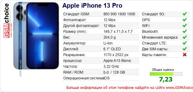 Данные о телефоне Apple iPhone 13 Pro на Вашем сайте