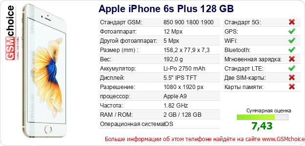 Данные о телефоне Apple iPhone 6s Plus 128 GB на Вашем сайте