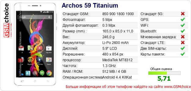 Данные о телефоне Archos 59 Titanium на Вашем сайте