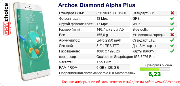 Данные о телефоне Archos Diamond Alpha Plus на Вашем сайте