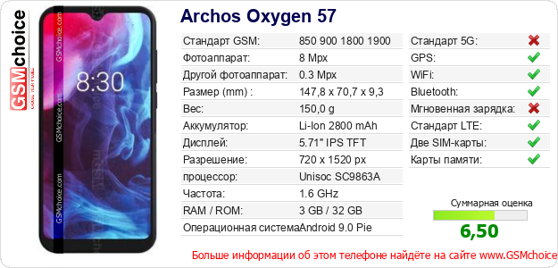Данные о телефоне Archos Oxygen 57 на Вашем сайте