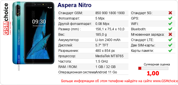Данные о телефоне Aspera Nitro на Вашем сайте