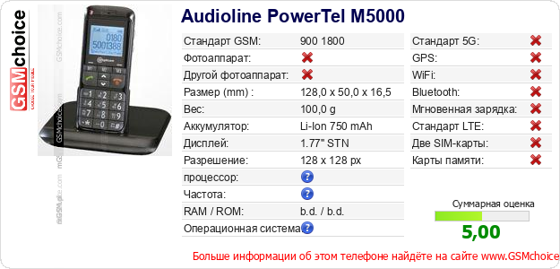 Данные о телефоне Audioline PowerTel M5000 на Вашем сайте