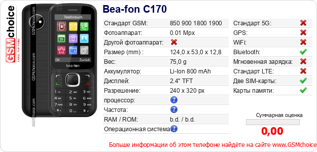 Данные о телефоне Bea-fon C170 на Вашем сайте