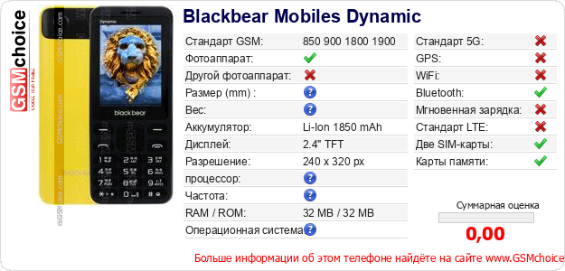 Данные о телефоне Blackbear Mobiles Dynamic на Вашем сайте