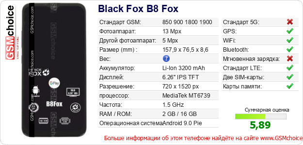 Данные о телефоне Black Fox B8 Fox на Вашем сайте