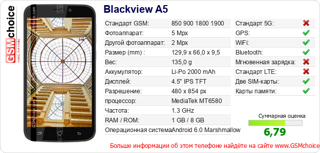 Данные о телефоне Blackview A5 на Вашем сайте