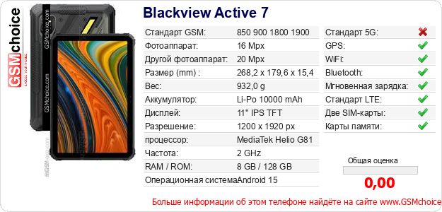Данные о телефоне Blackview Active 7 на Вашем сайте