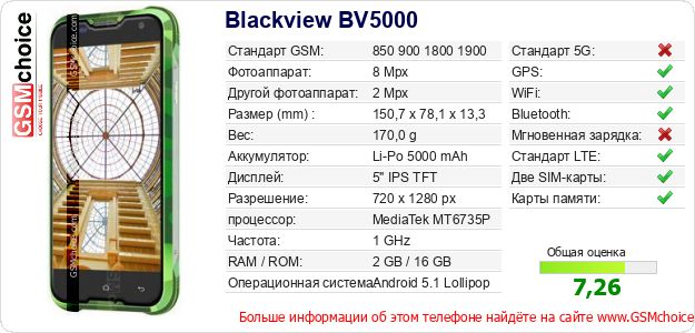 Данные о телефоне Blackview BV5000 на Вашем сайте