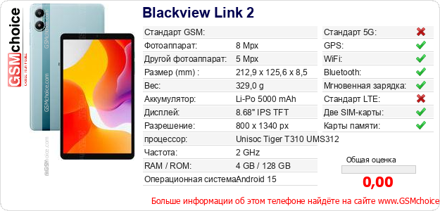 Данные о телефоне Blackview Link 2 на Вашем сайте