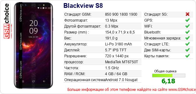 Данные о телефоне Blackview S8 на Вашем сайте