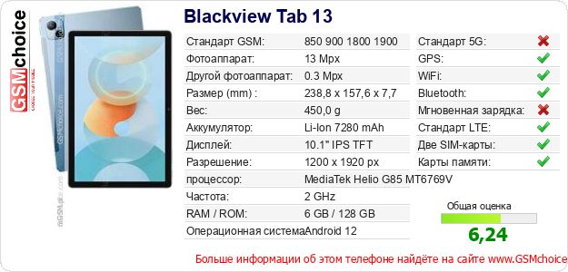 Данные о телефоне Blackview Tab 13 на Вашем сайте