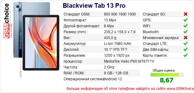 Данные о телефоне Blackview Tab 13 Pro на Вашем сайте