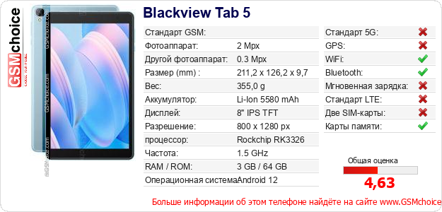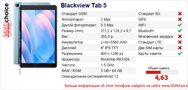 Данные о телефоне Blackview Tab 5 на Вашем сайте