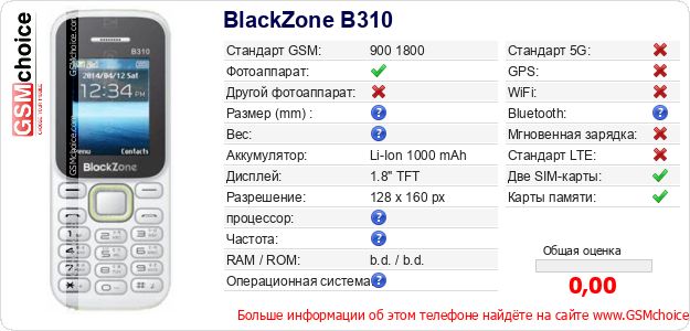 Данные о телефоне BlackZone B310 на Вашем сайте