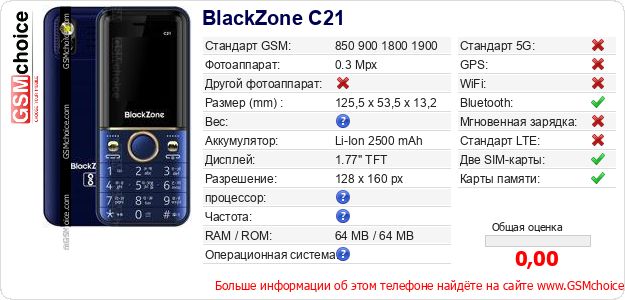 Данные о телефоне BlackZone C21 на Вашем сайте