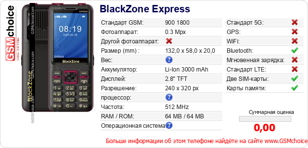 У Тебя есть свой сайт? Хочешь где-то разместить информацию о базовых данных мобильника BlackZone Express ? Это запросто устроить. Достаточно скачать картинку или скопировать и разместить на соответствующем сайте нижерасположенный код:Размещение этого кода вызовет появление нижерасположенной картинки: