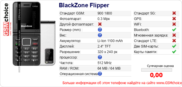 Данные о телефоне BlackZone Flipper на Вашем сайте