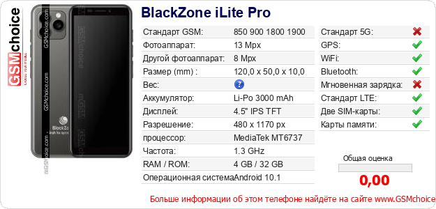 Данные о телефоне BlackZone iLite Pro на Вашем сайте