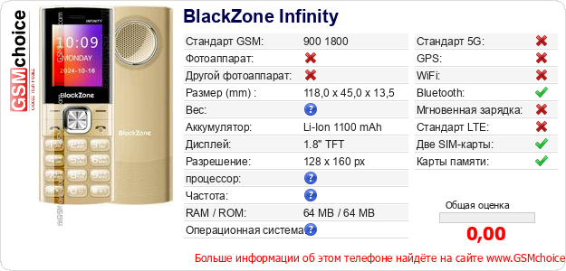 Данные о телефоне BlackZone Infinity на Вашем сайте