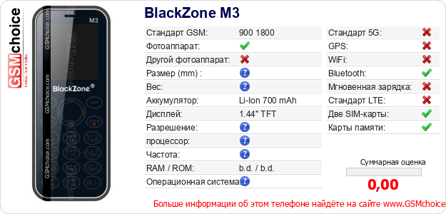 Данные о телефоне BlackZone M3 на Вашем сайте