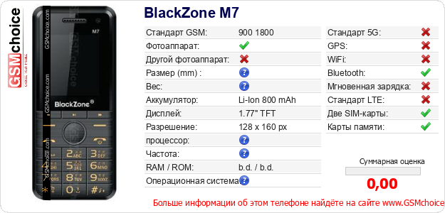 Данные о телефоне BlackZone M7 на Вашем сайте