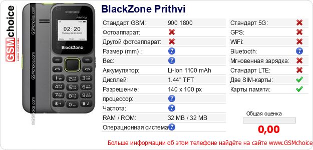 Данные о телефоне BlackZone Prithvi на Вашем сайте