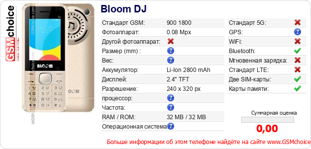 Данные о телефоне Bloom DJ на Вашем сайте