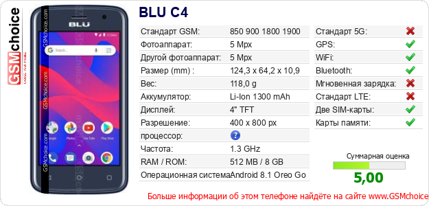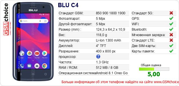У Тебя есть свой сайт? Хочешь где-то разместить информацию о базовых данных мобильника BLU C4 ? Это запросто устроить. Достаточно скачать картинку или скопировать и разместить на соответствующем сайте нижерасположенный код:Размещение этого кода вызовет появление нижерасположенной картинки: